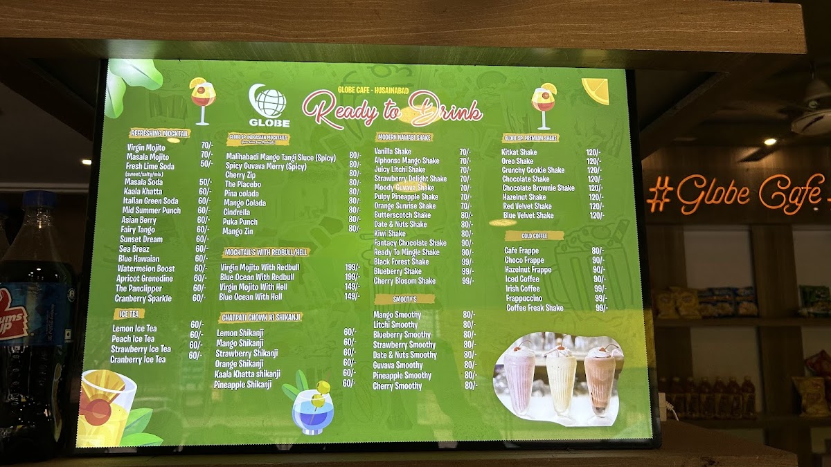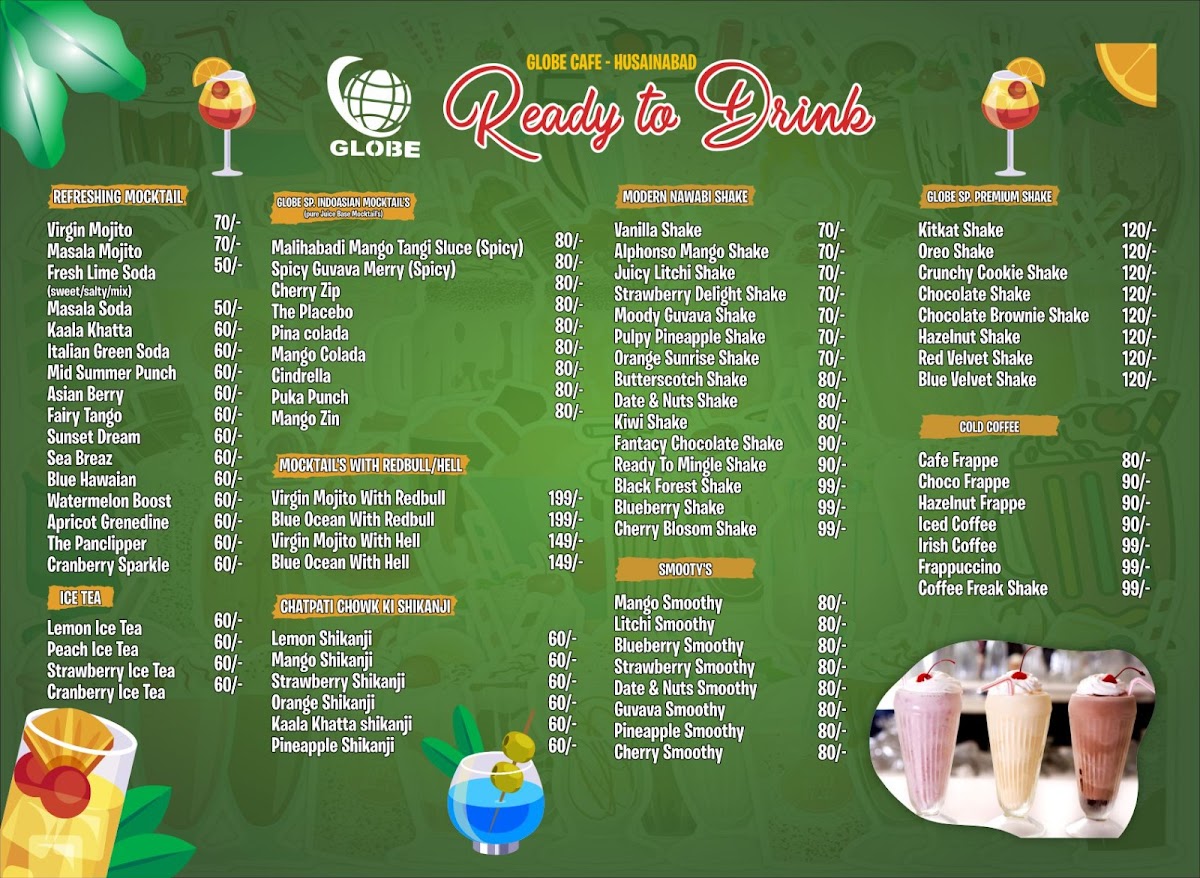 گلوب کیفے GLOBE CAFE 24x7 Menu